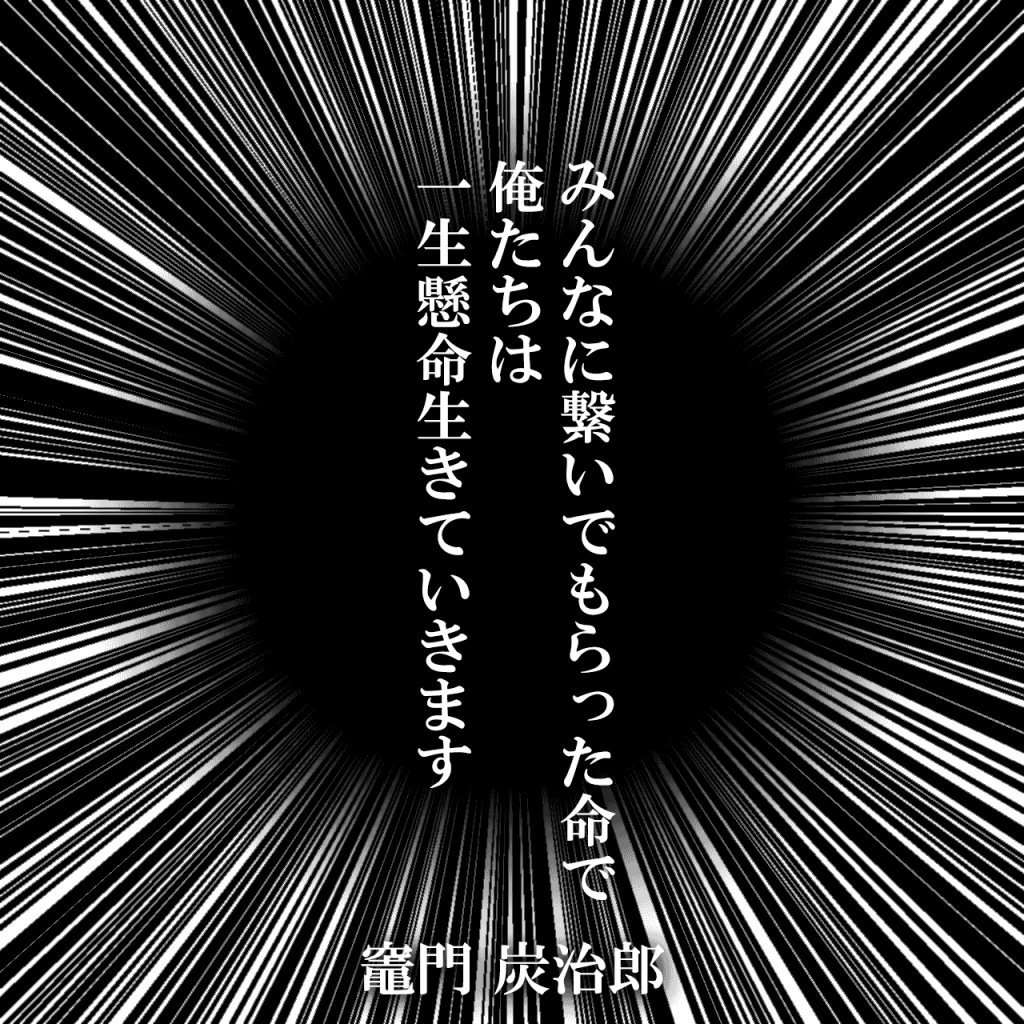 23. 炭治郎の名言⑳「みんなに繋いでもらった命で俺たちは一生懸命生きていきます。」